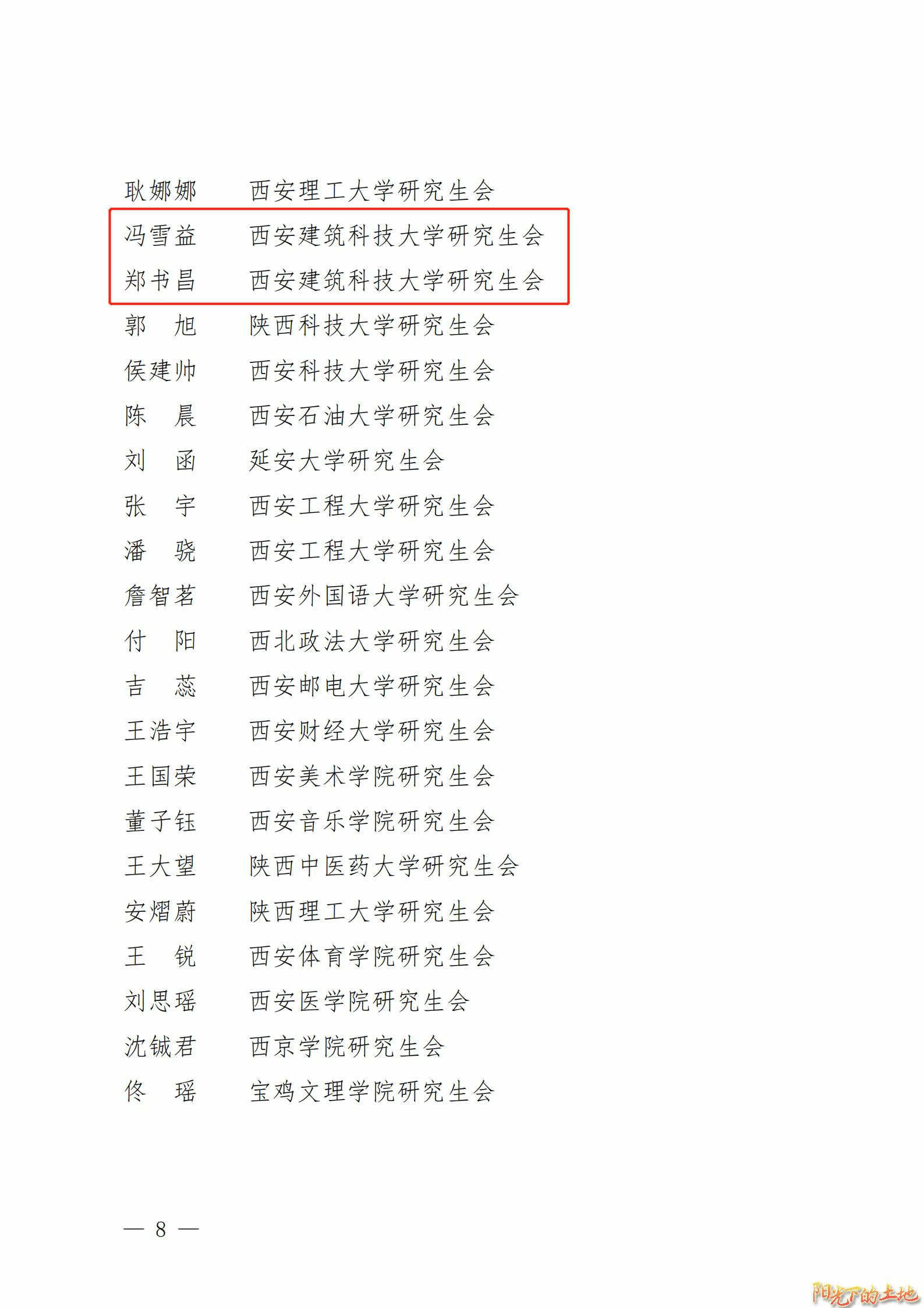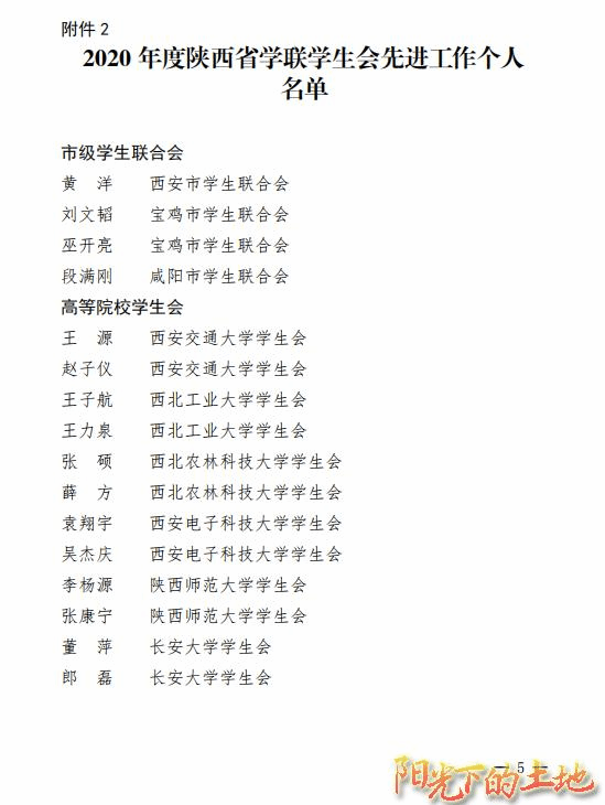 据悉,本次表彰中,全省高校有15个学生会、5个研究生会获得“2020年度陕西省标兵学联学生会组织”荣誉称号,76人获得“2020年度陕西省学联学生会先进个人”荣誉称号。