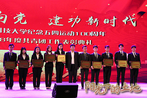 “五四”的火炬,唤起了民族的觉醒;伟大的事业,激励着同学们继往开来。为推进基层团组织活力建设,营造学习先进、追赶超越的氛围,在文艺汇演的同时,典礼现场还进行了2018年度共青团工作表彰。我校有373名同学被授予“优秀共青团员”荣誉称号, 163名同学被授予“优秀共青团干部”荣誉称号,293名被授予“优秀学生干部”荣誉称号,“十佳班长”10名、“十佳团支部书记”10人、“十佳社团”10个、“五四红旗团支部标兵”10人、“先进学生分会”4个、“先进研究生分会”4个、“优秀共青团干部”10人。“五四红旗团委”6个。