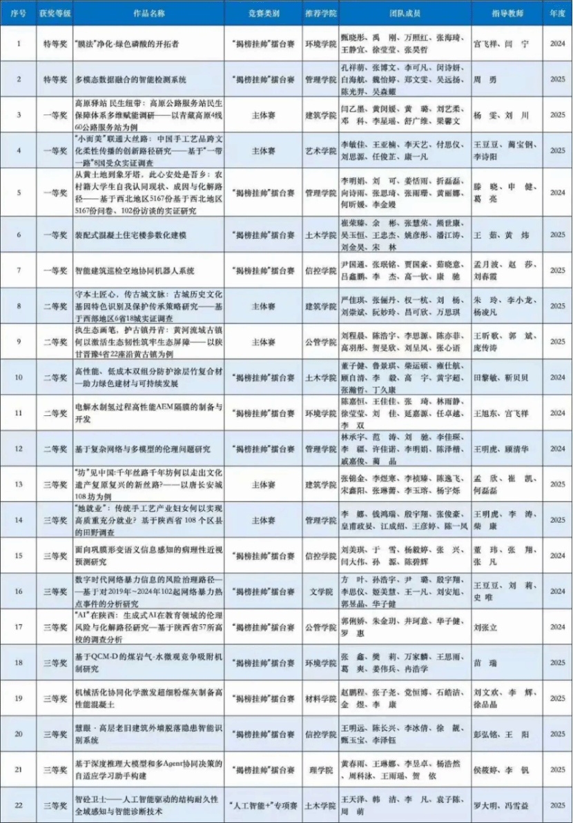 11月3日,第十九届“挑战杯”全国大学生课外学术科技作品竞赛在江苏南京落下帷幕。我校学子再创佳绩,荣获特等奖2项、一等奖5项、二等奖5项、三等奖10项,以陕西高校第3的好成绩第五次捧得全国“优胜杯”,继续成为“挑战杯”竞赛发起高校!