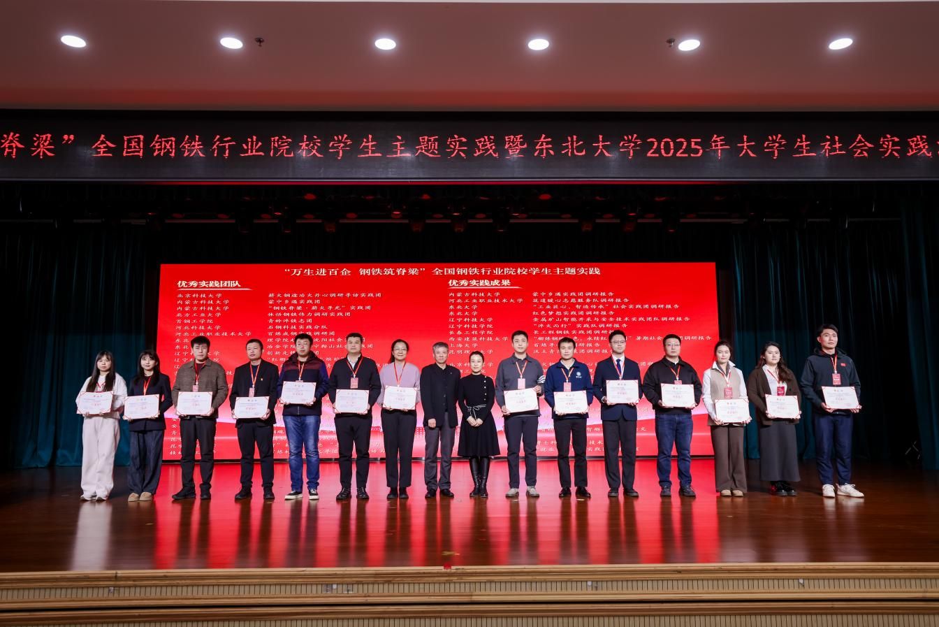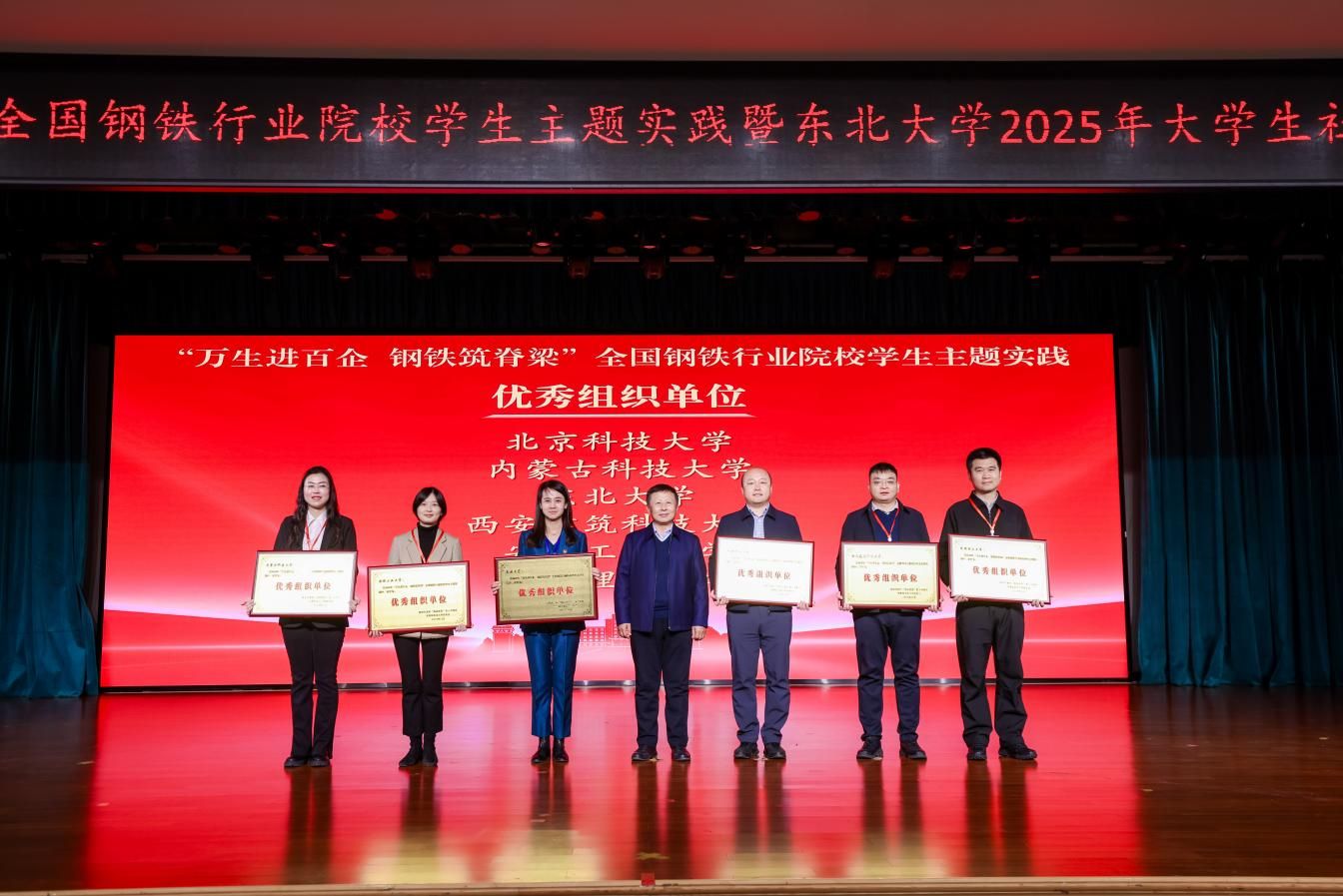 12月3日,“万生进百企 钢铁筑脊梁”全国钢铁行业院校学生主题实践总结表彰大会在东北大学举行,东北大学副校长王辉、东北大学相关部处负责同志以及50余名来自北京科技大学、西安建筑科技大学、昆明理工大学等“钢筋铁骨”育人共同体高校相关部门负责同志、获奖师生代表出席。我校荣获优秀组织单位,冶金学院“深研钢铁脊梁,砺行智造之路”暑期社会实践团荣获优秀团队、“砺炼钢魂本色,永续红色基因”钢铁之魂红色寻访专项暑期社会实践调研报告荣获优秀成果奖