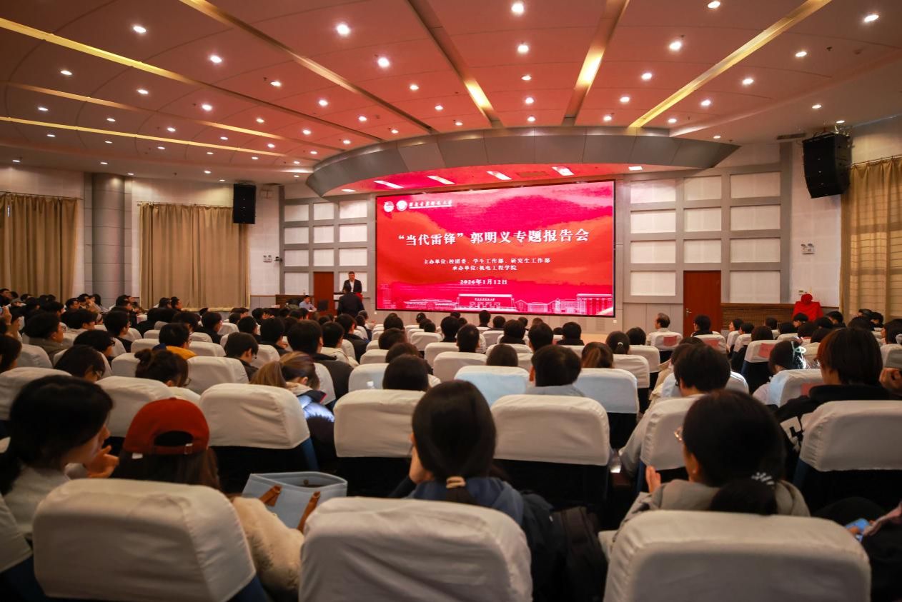 张晓辉代表学校致欢迎辞。他指出,西安建筑科技大学作为土木建筑“老八校”,百余年来始终心怀“国之大者”,将“自强、笃实、求源、创新”的校训精神与服务国家、奉献社会的使命担当深度融合。学校深耕实践育人,构建了四级志愿服务体系,三万余名注册志愿者活跃在各类公益场景,多次获评全国社会实践优秀单位,研究生支教团、西部计划等志愿服务项目成效显著,雷锋精神已在校园蔚然成风。他表示,郭明义同志作为新时代雷锋精神的模范践行者与坚定传承者,以纯粹初心与无私奉献获评“当代雷锋”“改革先锋”等殊荣,为全社会树立了可亲可学的时代标杆。他希望全体师生以此次报告为契机,深刻感悟雷锋精神的时代内涵,教师将雷锋精神融入教学科研与立德树人全过程,同学们在专业学习与志愿服务中践行初心使命,把榜样感召转化为实干动力,书写建大人的新时代雷锋故事。