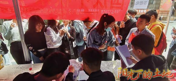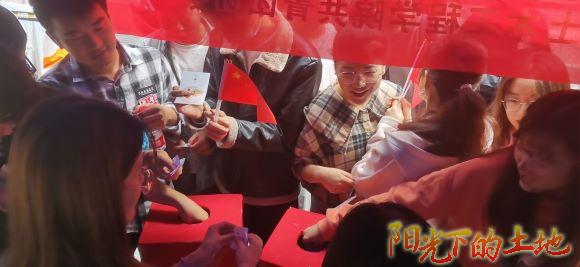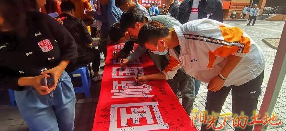 9月末的建大校园丹桂飘香,温暖的阳光透过树叶的点点间隙撒在红幅上,将红幅映衬的格外鲜亮,连空气中都仿佛氤氲着双节来临前的喜庆气息。虽然已至秋季,但这丝毫不影响同学们参加双节特别活动的热情。刚过11点20分,活动帐篷前便拥满了人,同学们你一言我一语,商量着在红幅上写下对祖国的美好祝愿:祝福伟大的祖国生日快乐,繁荣富强!我们的祖国在经历了寒冬疫情的考验之后,必在金秋迎来硕果累累的丰收!