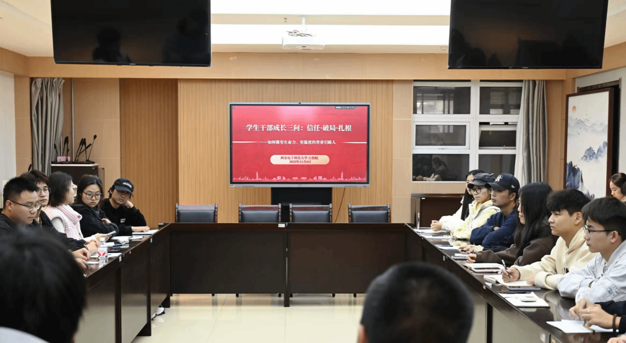 本次交流座谈会邀请陕西省学生联合会第十一届第二任主席、西安电子科技大学党委组织部干事白怡暄作专题分享。他结合学生时代的学生工作经历,针对“如何做有生命力、有温度的青春引路人”主题提出三个关键词——信任,破局,扎根,并对全体学生骨干分享了三点希望:一是要传承好“信任”这一优良传统。学生骨干要守牢学生工作底线,特别是青马工程学员要发挥政治骨干的示范引领作用,坚持从同学中来,到同学中去,争做“学生友”,勿当“学生官”,做同学们“信得过”的学生骨干;二是要利用好“破局”这一重要法宝。要立足当下,坚持引领、建设、传播、服务、传递“五位一体”工作模式,充分发挥主观能动性,主动求变,增强在困境中“破局”能力;三是要发挥好“扎根”这一显著优势。一方面,学生骨干要“扎根”自身能力建设,先当靠谱人,再当引路人。另一方面要“扎根”周围同学实际需求,围绕学生成长发展服务体系广泛、深入地开展调研,在工作中强化责任意识,发扬担当精神、展现奉献精神。