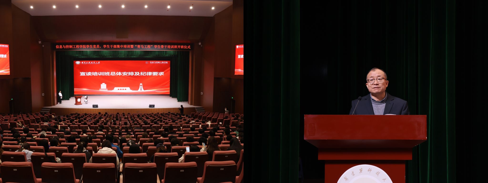11月5日,信息与控制工程学院在草堂校区紫阁大礼堂举行学生党员、学生干部集中培训暨“青马工程”学生骨干培训班开班仪式。学院党委书记于军琪,党委副书记、副院长米泽龙,学生工作办公室主任顾欣,团委副书记赵莎,各年级辅导员以及本期培训班全体学员参加。开班仪式由学院团委书记杨晓寒主持。