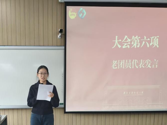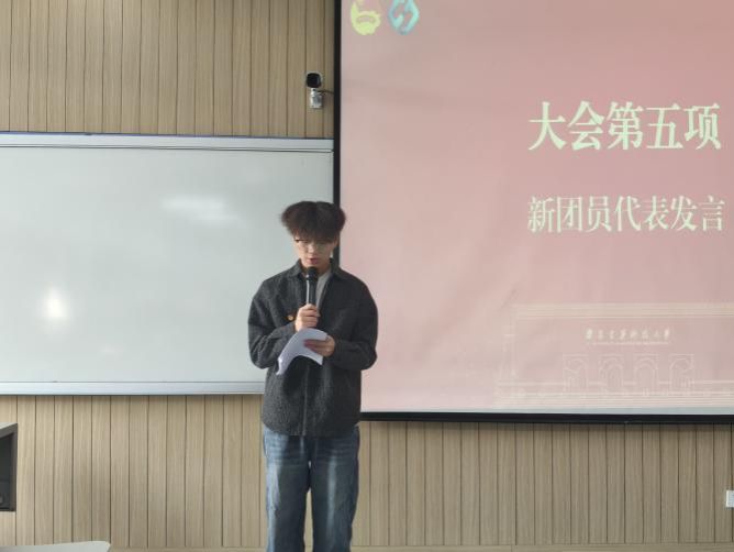 随后,老团员代表朱浩琦分享了自己在团组织中的成长经历与收获感悟,勉励新团员们要珍惜团员身份,牢记初心使命,以身边榜样为标杆,在学习生活中勇挑重担、甘于奉献,让青春在奋斗中绽放绚丽光彩。新团员代表王懿德发言,表示今后将牢记入团誓言,时刻以团员标准严格要求自己,勤奋学习知识,锤炼过硬本领,积极投身志愿服务与校园建设,用实际行动诠释新时代团员的责任与担当。