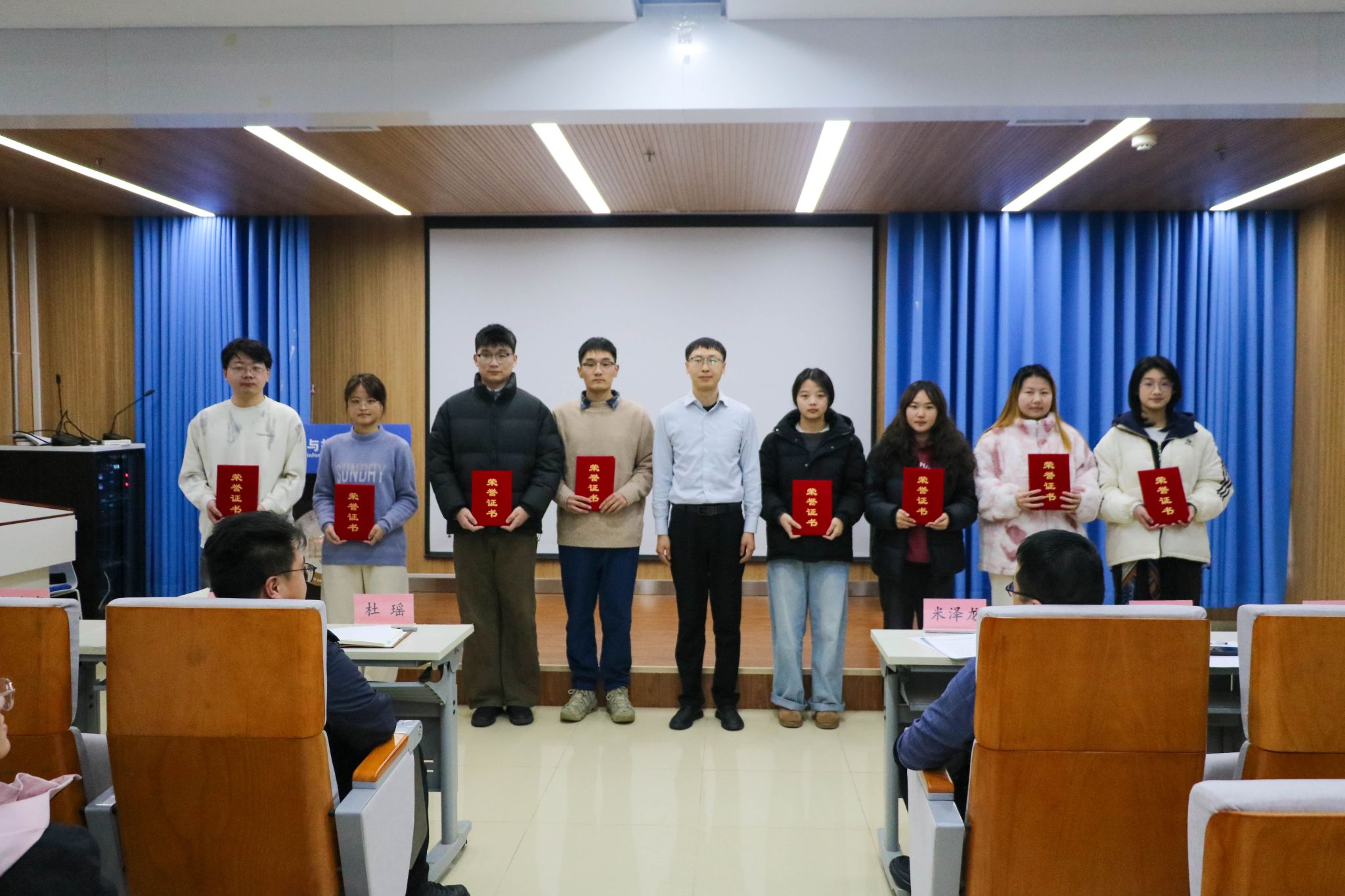 辅导员杜瑶为学院2026年寒假专项社会实践代表授旗,辅导员张凡为2025年寒假专项社会实践获奖代表颁奖。