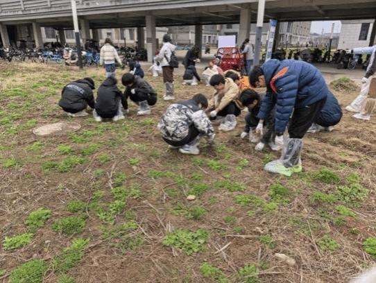 三月的草堂暖意渐浓,初春时节正是向日葵幼苗扎根生长的关键时期。活动现场,在负责人的统筹安排下,大家迅速分工、默契协作,现场一派热火朝天的劳动景象。有人俯身田垄,小心翼翼辨识幼苗与杂草,逐一细致拔除;有人手持工具,仔细清理散落在园区的枯枝碎石;还有人两两配合,将清理出的杂草杂物集中装袋、有序清运。各环节衔接流畅、有条不紊,志愿者们以严谨认真的态度,用汗水为向日葵幼苗的茁壮成长扫清障碍,用行动为校园增添一抹春日生机。