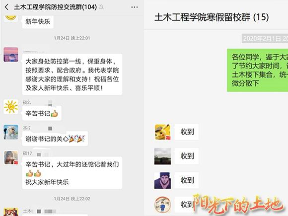 成立学院湖北籍学生联系群与假期留校学生群,及时提醒学生健康安全,传达学院领导老师关心关爱。学院领导带队进行在校师生慰问走访工作,介绍学院工作保障制度,回答解决师生需求,增强师生抗击疫情必胜的决心。