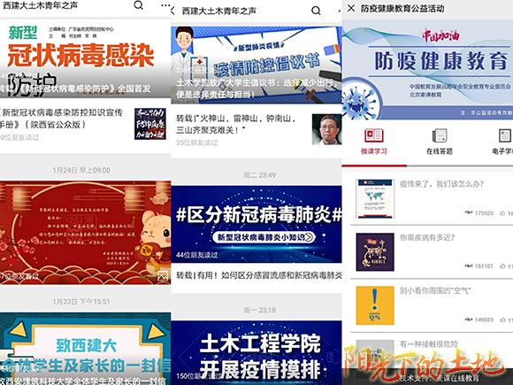 学院学生会、研究生会发布《土木工程学院致广大学生倡议书》,倡议全体学生减少出行,全体学生干部关键时刻挺上去,危难时刻撑起来,众志成城,共克时艰;通过公众平台、微信群、QQ群等渠道积极开展疫情防控宣传、知识教育与舆论监督引导工作,提醒师生认清形势,做好自我保护。积极筹划“停课不停学”预案,通过雨课堂、中国大学生慕课在线等平台开展教育教学与朋辈线上辅导,引导师生充分利用假期,提升自我。