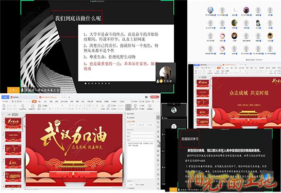 “众志成城,共克时坚”。每一个班集体都在用自己的形式广泛开展大学生思想政治教育,班主任、辅导员也发挥着应有的作用。在这特殊的时期的主题班会,传递的是老师对学生的关心,更是长辈对晚辈的叮嘱。线上主题班会让两个月没有见面的同学们又听到了熟悉的唠叨,更加珍惜了在校园的生活。