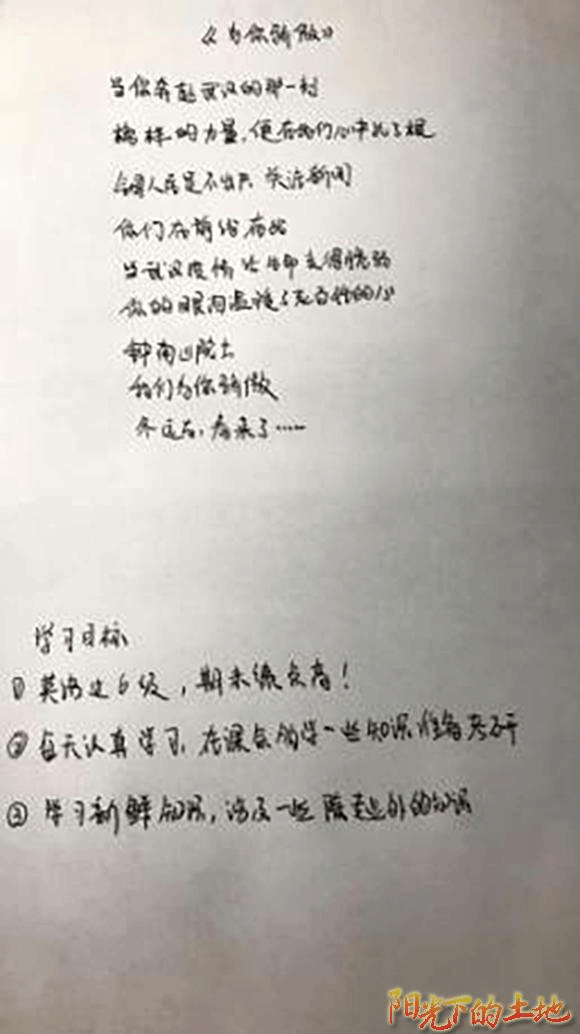 同学们通过寄语、短诗、绘画表达自己在此次抗击疫情的医护人员的尊敬,面对疫情我们应该采取的态度和行动。学习是学生的本职,学子们积极谈论自己的学习目标,张倩同学也为自己制定了学习目标:1.希望这学期能够继续加油,绩点能够再有所进步;2.在学校的话能够多锻炼身体,增强免疫力。在谈及制定学习计划的优点时,应数1802王庚越表示:“制定学习计划让我学习目标明确,实现目标有保证。短时间内达到小目标,长时间达到大目标。优点发扬,缺点克服,使学习不断进步。”应数1802樊嘉怡希望为家人做力所能及的事,练习做饭。