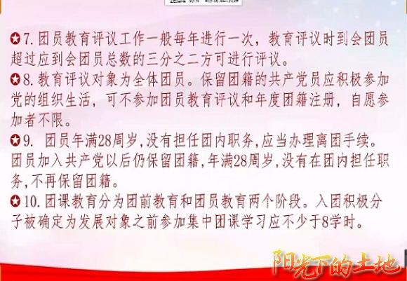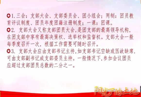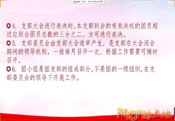 首先,李龙艳同学带领各团支部委员一起学习了《中国共产主义青年团章程》,主要强调了青年、团组织、党组织三者之间的密切关系:中国共产主义青年团是广大青年在实践中学习中国特色社会主义和共产主义的源泉,是中国共产党领导的先进青年的群团组织,是中国共产党的助手和后备军。李龙艳同学还详细讲述了如何获得入党的资格,强调了作为团员所应尽的职责和必须遵守的一系列规章制度,提高了大家对中国共产主义青年团的认知。