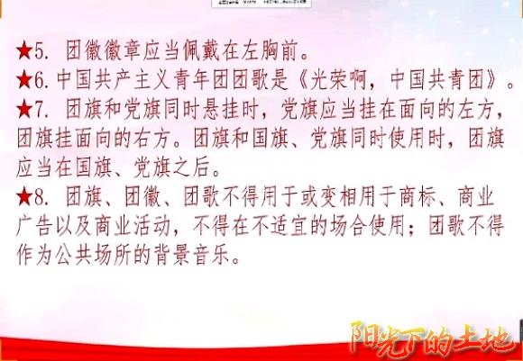 接着,李龙艳同学带领学习了《中国共产主义青年团团旗、团徽、团歌制作使用管理规定》,加深了各团支部委员对团旗、团徽、团歌的认知,要求各团支部委员在日常工作生活中严格要求自己,为学院思想道德建设做出贡献。