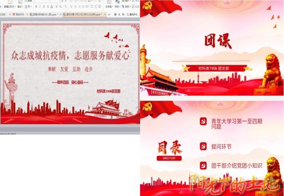 活动最后,团支书采用线上PPT展示的方式,号召支部成员进行疫情防控宣传服务工作,宣扬雷锋精神;在学习之余,创作传递温暖心声、鼓舞抗“疫”热情的线上文创作品。用行动来证明坚决打赢这场疫情防控阻击战的信心。