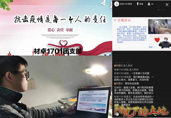 建大团委网讯(通讯员 郭正)近日,材料科学与工程学院分团委材料科学与工程专业2017级卓越工程师班团支部(材料卓越1701团支部)以QQ群课堂直播的形式,顺利开展“抗击疫情是每一个人的责任”主题团日活动。此次活动目的在于提高支部成员抗击疫情的责任意识,加强支部成员对党和国家的感恩之心,坚定支部成员战胜疫情的决心、信心。呼吁支部成员向最美“逆行者”学习,强化使命,努力担当,为战胜此次疫情贡献自己的力量。
