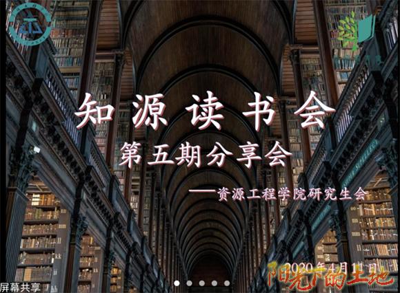 4月11日下午三点,资源工程学院研究生“知源”读书会第五期如期召开,本期读书分享会在“腾讯会议”平台进行,参加此次分享会的有资源工程学院研究生辅导员牛腾、研会全体成员以及部分研究生和本科生。本期读书会特别邀请到建科学院研会主席张鹏宇。