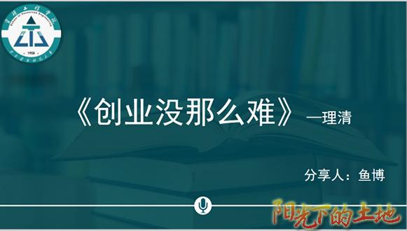 第二位分享者是来自矿业工程19级的鱼博,他分享的书籍是《创业没那么难》。