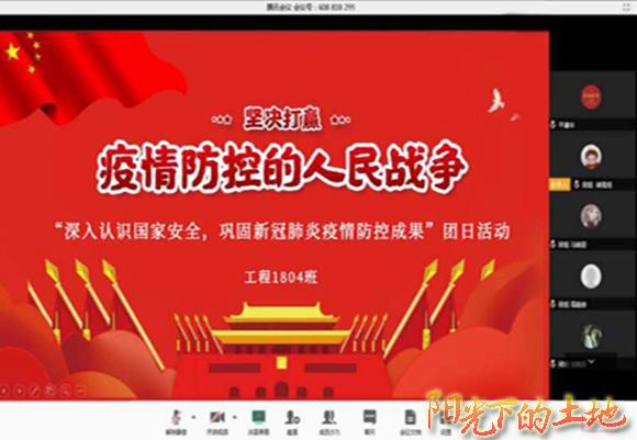 各团支部以“深入认识国家安全,巩固新冠肺炎疫情防控成果”,为主题,由各个团支部书记向同学们宣讲国家安全法律、公共卫生安全及疫情防控等知识,增强团员青年国家安全意识。同学们围绕主题进行了热烈的讨论,大家畅所欲言、各抒已见。