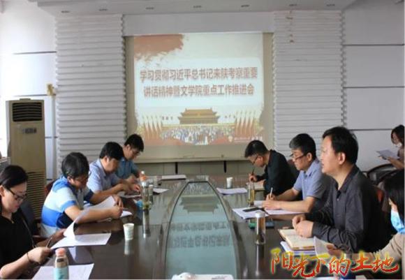 建大团委网讯(通讯员 隋合)5月21日上午,在雁塔校区教学大楼830会议室,文学院党委召开学习贯彻习近平总书记来陕考察重要讲话精神暨重点工作推进会,学院党委委员、班子成员、各系部主任、党支部书记、机关科级以上干部参加会议,会议由学院党委书记颜益民主持。