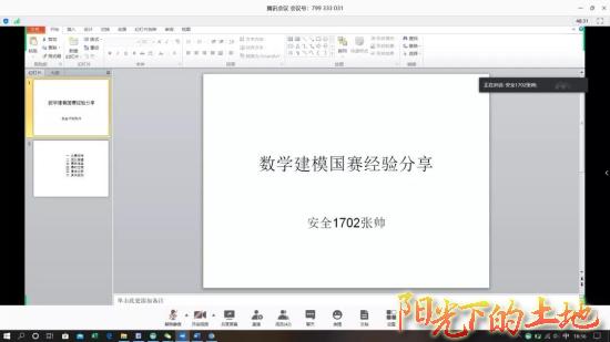 为了提高我院参赛选手的竞赛实力和创新实践能力,培养学生之间的团队协作精神,同时为各参赛队伍之间提供一个交流与学习的平台,5月14日下午4点,资源工程学院数学建模竞赛分享会于腾讯会议举行。本次分享会邀请到了数学建模大赛国赛一等奖获得者安全科学与工程1703班的王颂、省级一等奖获得者安全科学与工程1702班的张帅两位同学。参加此次分享会的有资源工程学院研究生会成员以及部分研究生、本科生。会议由人力资源部的王鑫主持。