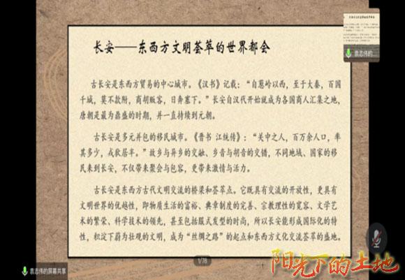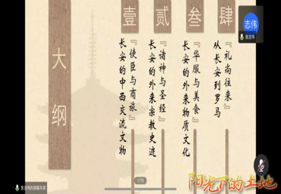 最后袁老师总结到,“长安”成为现代西安历史文化的象征符号。通过回顾两千年来东西文明的传播与互相借鉴,我们感受到东西方文化交流的重要意义。做为一名新时代大学生,我们应该保持文化自信、怀着交流的心态将我们的中华传统文化发扬光大。