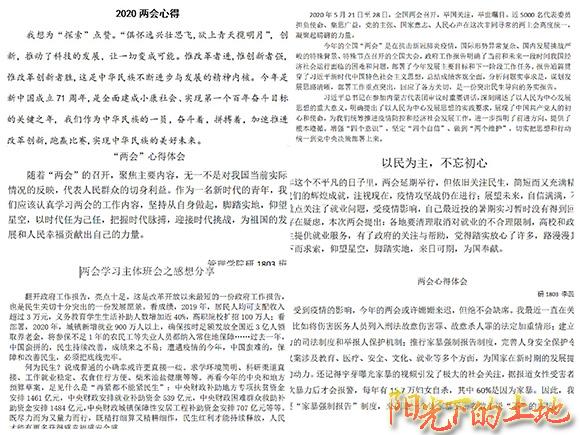 一年一度的全国两会,是我国的政治“风向标”。作为新时代青年学子,更应认真学习贯彻“两会”精神,切实把思想和行动统一到中央的决策部署和习近平总书记的系列讲话精神上来,在今后的工作学习中自觉践行两会精神,增加知识储备,严守工作职责,为中国特色社会主义现代化建设和实现伟大“中国梦”贡献青春力量!