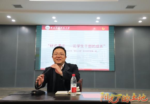 最后,学院党委副书记、副院长李荫兵为本届“青马工程”讲授第一次课,主题为“论学生干部的成长”。李书记向所有受训干部强调,学习是首要,实干是精髓,政治是旗帜。人生起于蓬勃与激情,归于沉淀与平凡。最后,李书记对学生干部提出了几点希望:第一,团结是灵魂,创新是声音。学生干部分工不分家,学生组织应紧密团结、合作,学生干部应努力提升自我,加强创新意识;第二,奋斗在当下,收获在未来。他倡导同学们奋斗在当下,活出精彩而有价值的人生。
