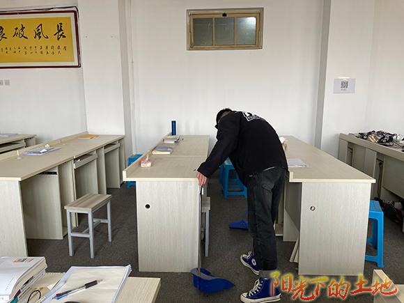 志愿者擦拭雕像、打扫教研活动室