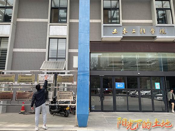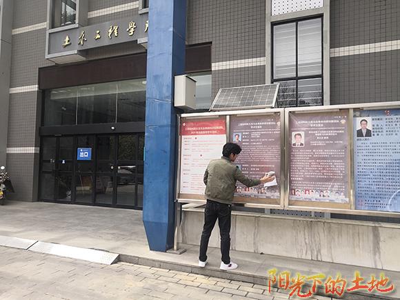 志愿者擦拭土木楼前告示栏