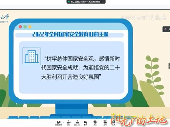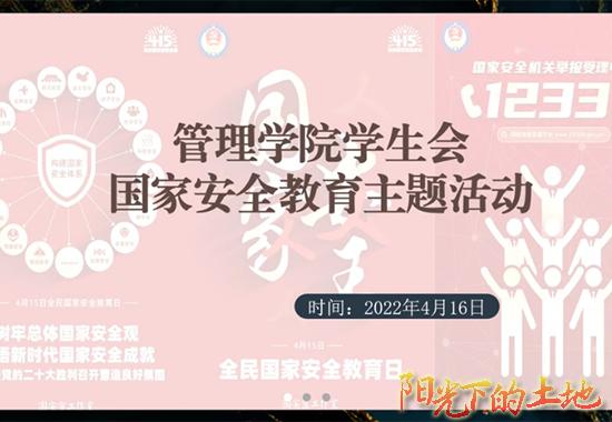建大团委网讯 为深入贯彻落实总体国家安全观,强化学生干部的国家安全意识,营造积极维护国家安全的氛围,管理学院学生会于2022年4月16日在线上开展国家安全教育主题活动,本次活动由管理学院学生会执行主席团成员周先辉主持,管理学院学生会主席团成员和各部门负责人参加本次活动。