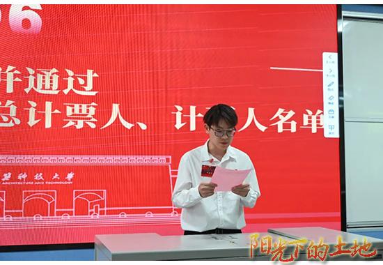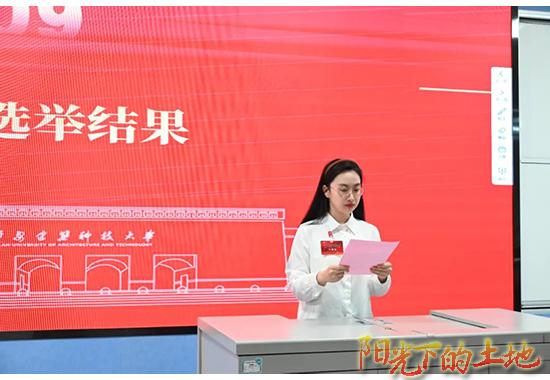 大会第九项,由总监票人金珊羽宣读选举结果,大会通过差额选举的方式预选产生了共青团西安建筑科技大学公共管理学院第一届委员会委员候选人和校团代会候选人。