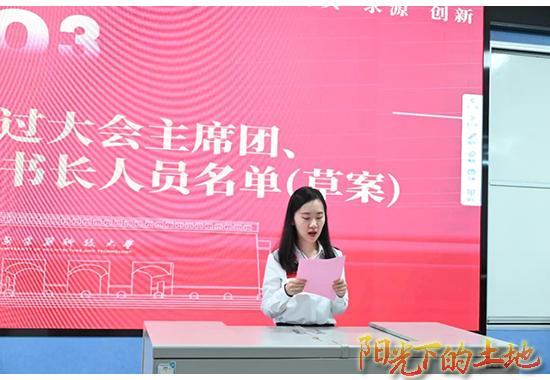 大会第七项,杨欣代表大会宣读学院分团委委员候选人预备人选和校团代会候选人预备人选名单。