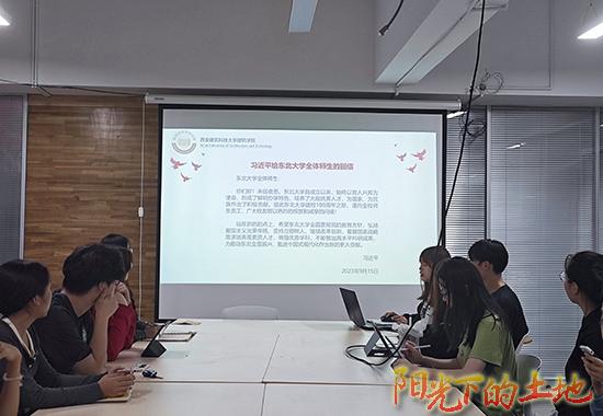 为加强思想建设,将学习好、贯彻好、落实好习近平总书记重要回信精神作为重要政治任务。2023年9月19日晚19:30,建筑学院学生会、研究生会在东楼研讨室C组织学习习近平给东北大学全体师生的回信精神。此次会议由院研究生会李富瑶主持,建筑学院学生会及研究生会全体学生干部参加本次会议。