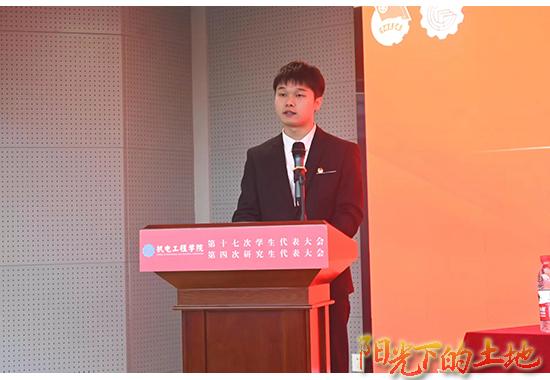 随后,院学生会执行主席牛源向大会作题为《心存高远之志奋发砥砺前行在矢志奋斗中谱写新时代的青春之歌,在学校“双一流”建设进程中贡献青春力量》的第十六届学生会委员会工作报告,院研究生会执行主席习坤向大会作题为《引领青春风采 稳固创新动力 团结带领广大机电青年团结合作,砥砺前行》的第三届研究生会委员会工作报告。