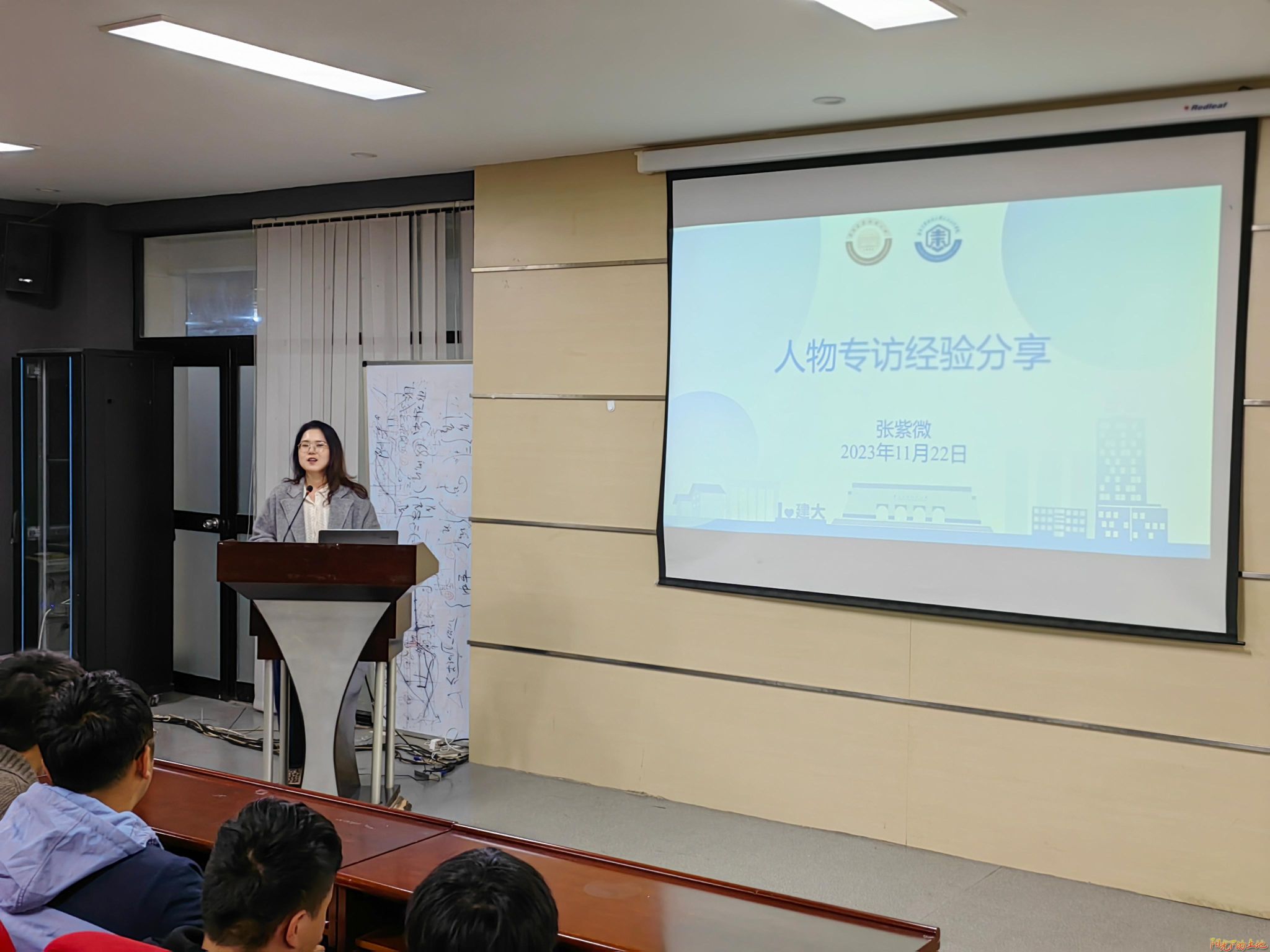此次分享会由土木工程学院研究生会主席团成员黄畅主持,特别邀请到土木工程学院2022级研究生辅导员张紫微老师做人物专访经验分享。分享会围绕何为访谈、访谈前的准备、访谈时的方法三个方面展开。土木工程学院早在2021年就开展名为“鹤发银丝映日月,丹心热血沃新花”系列专访活动,张紫微老师向工作组成员展示了当时的工作成果“厚植沃土培良木——西安建筑科技大学土木工程学院交通运输工程系师生校友访谈录”,结合实例分享了访谈过程中必要的素材收集内容。