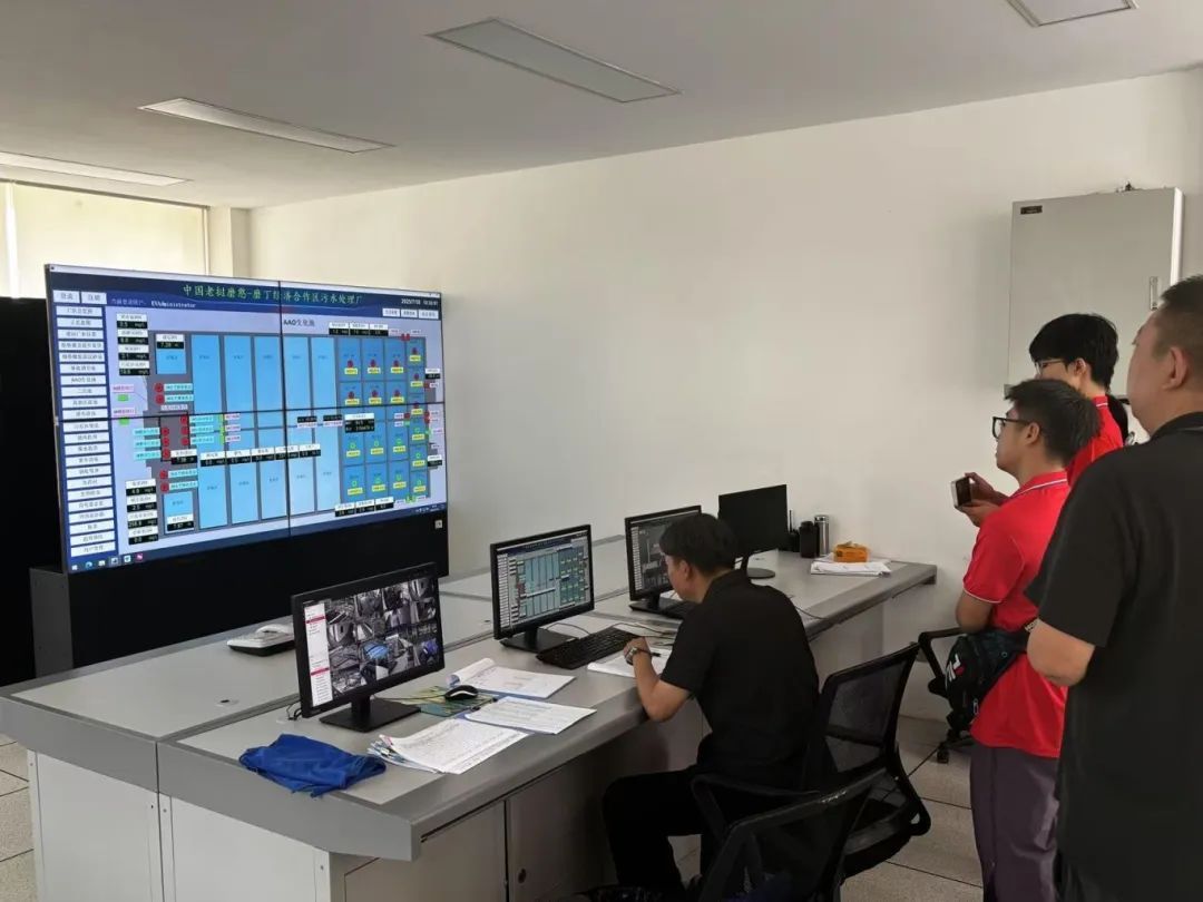 实践团成员在中控室看到,实时监测数据显示,处理后的污水COD(化学需氧量)稳定在50mg/L以下,优于国家标准,充分证明了该工艺在高盐水质处理中的有效性。