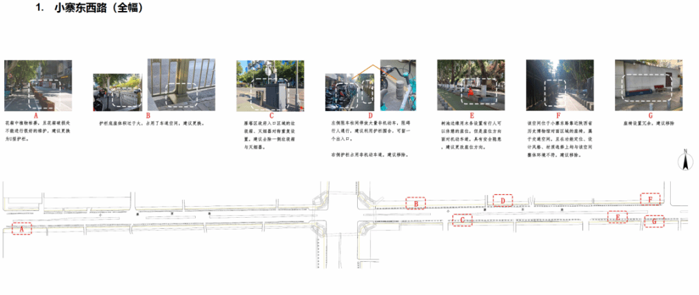 1.实地测量记录:团队对区域内30多处重要节点进行详细踏勘,使用测量工具记录公共设施的现状、布局及存在问题。