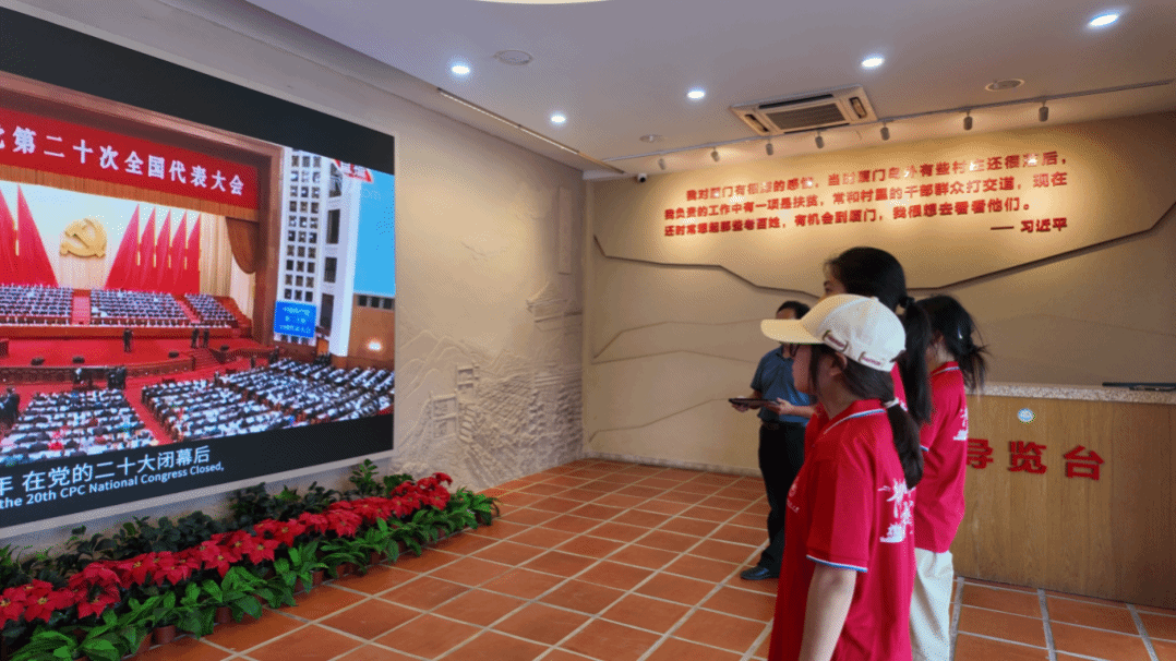 随后,团队来到厦门经济特区纪念馆,在讲解员的带领下,通过珍贵的历史影像、实物展品和沉浸式场景,系统学习特区建设40年来的发展历程。参观过程中,队员们还与讲解员就厦门经济特区在科技创新、对外开放、民生保障等领域的发展经验展开深入交流。馆内专题展区特别引人注目,生动展现了习近平总书记在厦门工作期间推动的“跨岛发展”战略和“马上就办、真抓实干”的工作作风。队员们驻足观看《1985-2000年厦门经济社会发展战略》,深刻领会“一张蓝图绘到底”的战略定力。此次厦门经济特区纪念馆之行,是实践团“从乡村看发展、从历史悟初心”系列活动的重要组成部分。实践队队长邓子涵表示,从军营村感受乡村振兴的生动实践,到纪念馆回顾特区发展的辉煌历程,队员们在理论与实践、历史与现实的结合中,进一步坚定了理想信念、明确了使命担当。